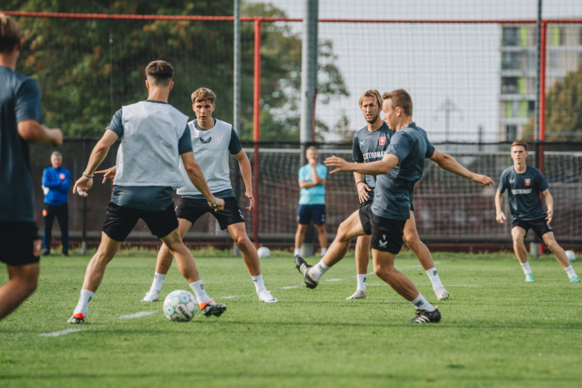 Voor de selectie van FC Twente stond er maandagmiddag een training op het programma. Gijs Smal, die sinds eind juli aan de kant staat met een blessure, werd verwelkomd op het veld en hervatte voor een deel de groepstraining. Een foto-impressie van de training.